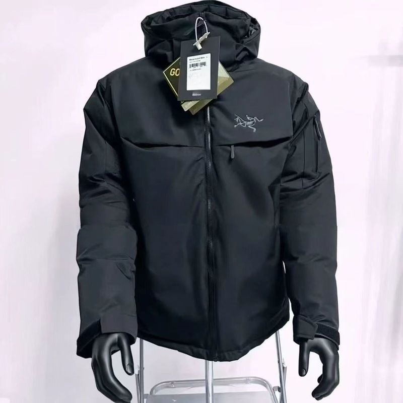 アークテリクス の高性能テクニカルウェア 防水防風なハードシェルにダウンインサレーションで極寒登山も安心 上質な刺繍ロゴが光るユニセックスデザインで カップルでの冬山アクティブに